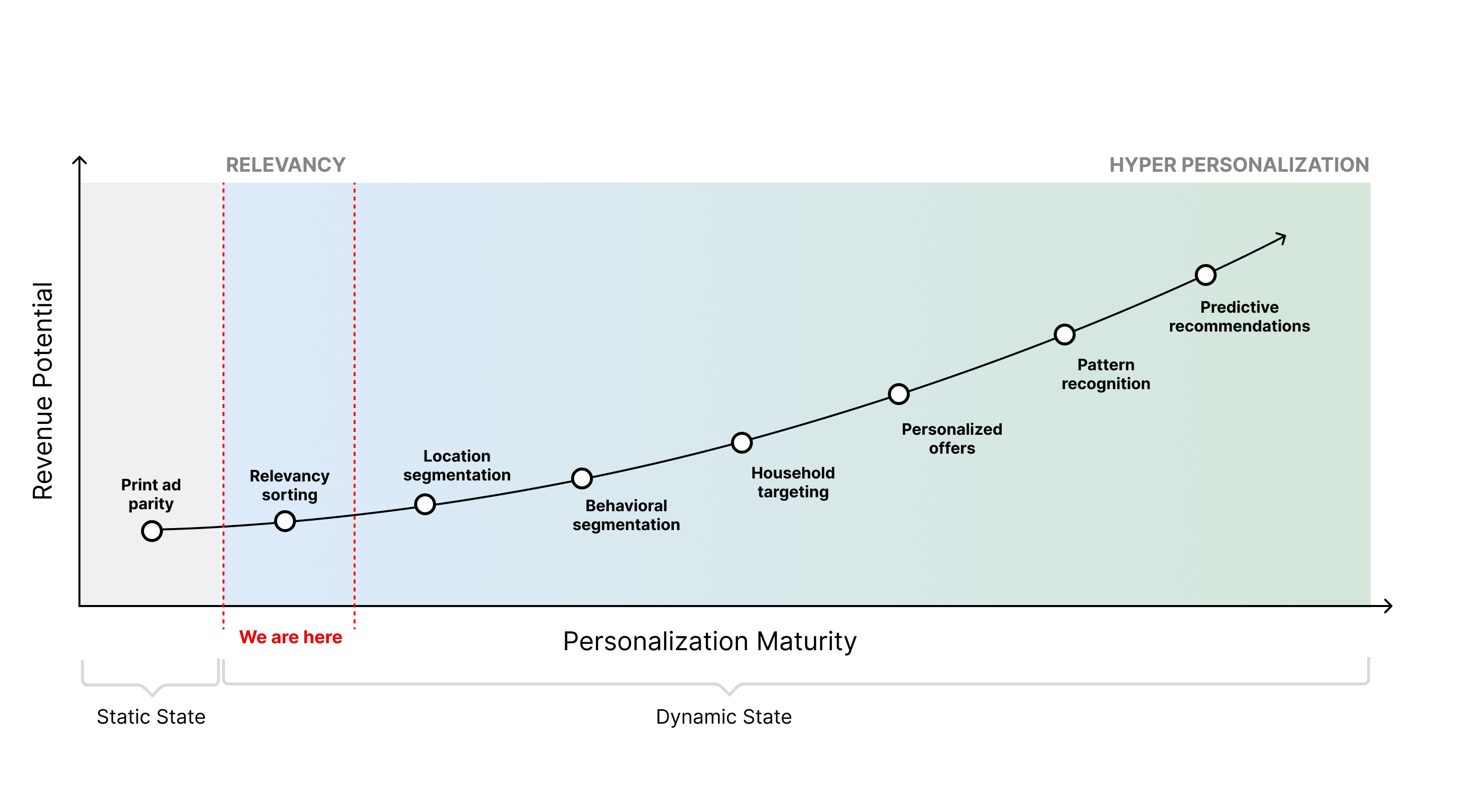 It had evolved only slightly from its spreadsheet origins — what I like to call building “faster horses.” While we managed to digitize the ad planning process and generate an API to surface ad data for Kroger.com and the mobile app, the underlying process remained rigid and manual. The API was the first big milestone, but it was still powering a one-size-fits-all experience.